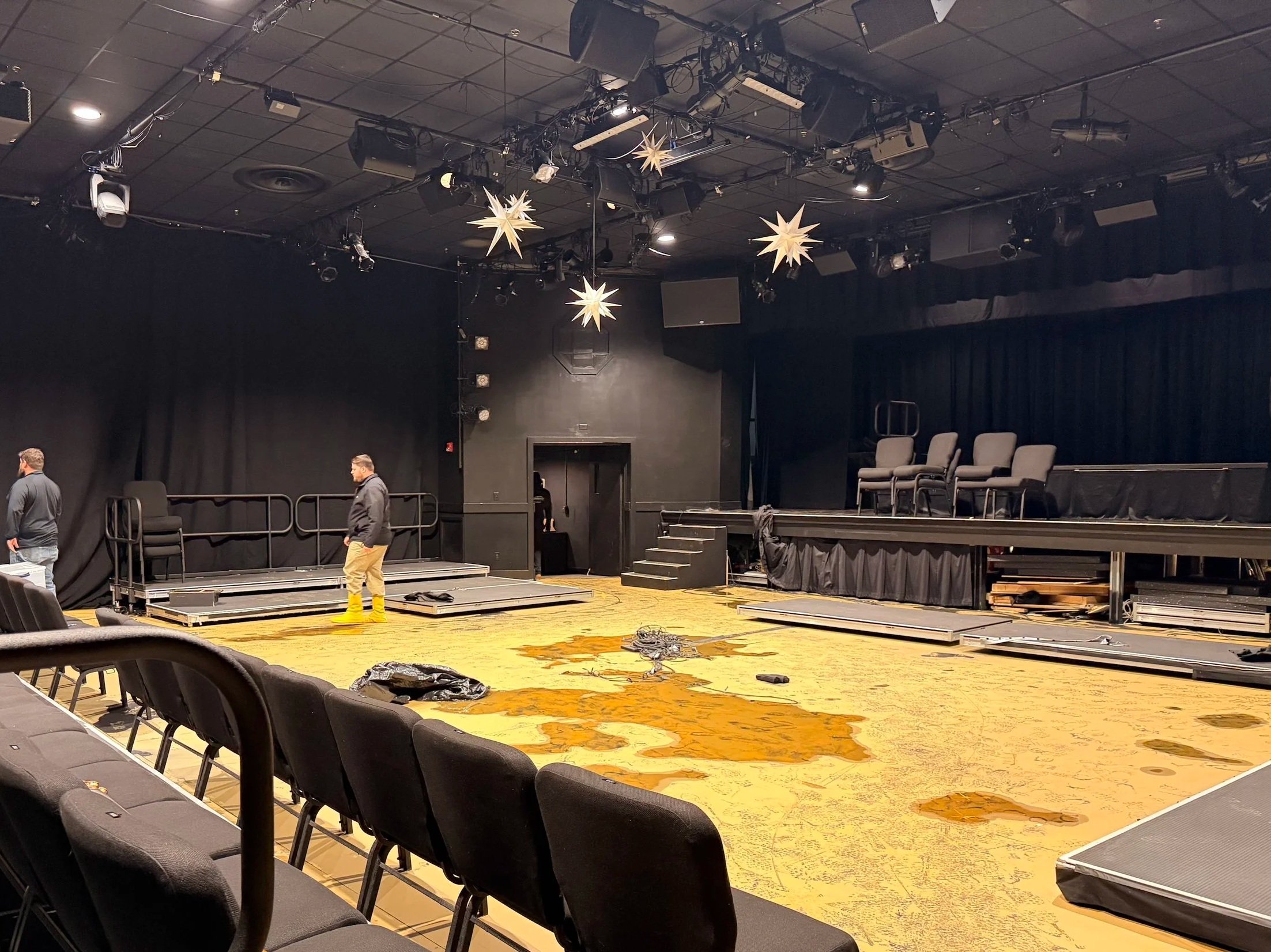 Recently, a burst pipe led to extensive flooding throughout the theater, lobby, and backstage areas. The damage is significant. Full “immersive” theater: water edition.